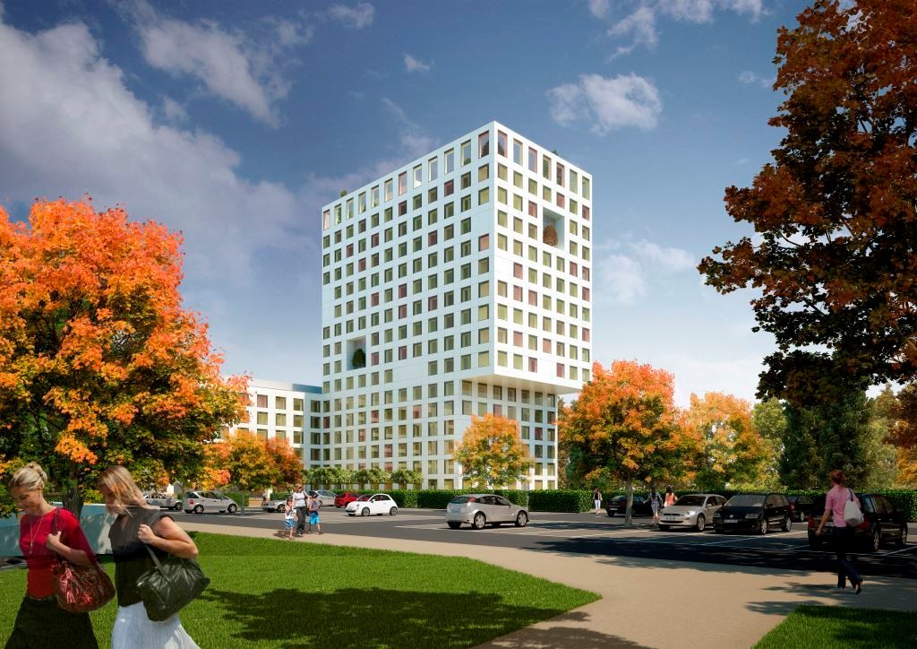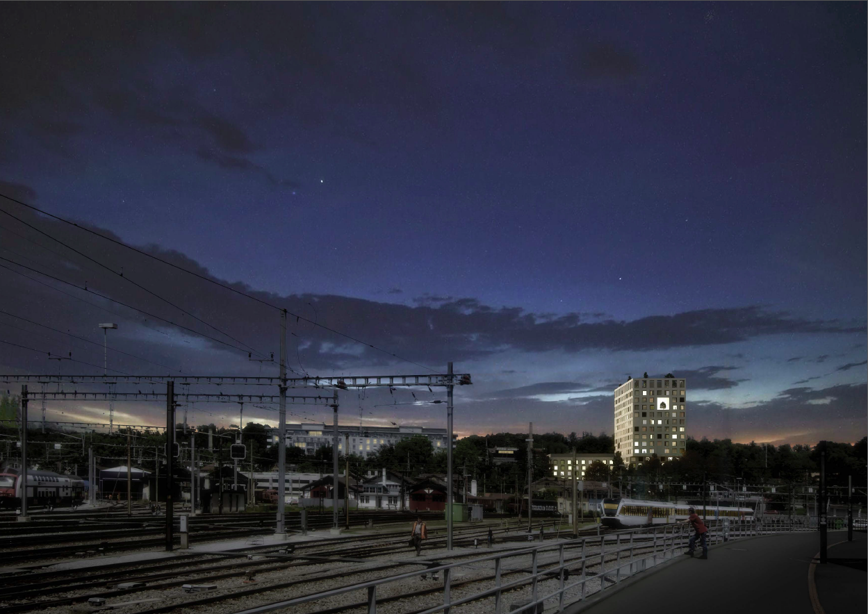 In der nördlichen Gabelung des Bahntrassees gelegen wird der obsolete Krankenhausbau durch einen städtebaulich markanten Pflegeturm ersetzt, welcher als dritte Vertikale im Stadtraum die Hochhausgruppe entlang der Bahn gegen Norden abschliesst. An der Brauerstrasse ist er mit einem Funktionstrakt mit den bestehenden Bauten verbunden. Neu- und Altbauten umschliessen vor dem Zugang eine zentrale Piazza mit direkter Anbindung an den Landschaftspark.