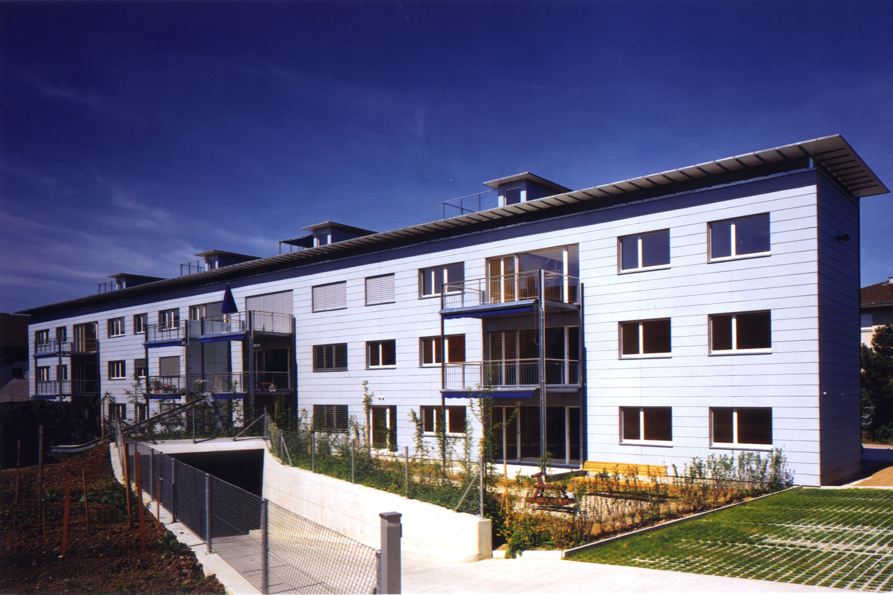 geometrisch strukturierten Wohnquartier Holzlegi. In diesem Umfeld enstehen dörfliche und urbane Räume mit unterschiedlichsten Nutzungsmöglichkeiten. In der Bebauungs- struktur des Wohnquartiers